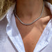 Sparkle like you mean it with this playful tennis necklace featuring brilliant 3mm cubic zirconia stones set in rhodium-plated brass. At 18 inches, it's the perfect length to catch the light and turn heads. Plus, the tarnish-resistant finish means you can wear it again and again without worry—no high-maintenance drama here, just pure shimmer.