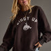 Saddle up in style with this charcoal sweatshirt that's got serious personality. The front features a bold white "GIDDY UP" message paired with a spirited rodeo rider graphic that'll have everyone asking where you got it. Wrapped in a cozy fleece lining and cut with a relaxed fit, it's comfort meets attitude. Finished with ribbed cuffs, hem, and a classic crew neck. Crafted from a 50/50 cotton-polyester blend that's built to last through all your adventures.