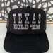 Rock the tables in our Texas Hold 'Em Black Trucker with dazzling Confetti Sparkle font. This cap boasts a 100% polyester front and mesh back, giving it a cool and comfortable feel. With a traditional 5-panel design, it features a seamless foam front panel with lining and a matching color braid. The visor has 8 rows of stitching and a matching fabric under visor, while the sweatband is also color coordinated. The plastic snap on the back allows for an adjustable fit, so it's perfect for adults sized 6 1/2 - 7 5/8.