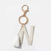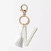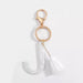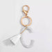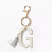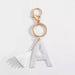 Snag your monogram in style with this adorable initial key chain, complete with a pristine white tassel that adds just the right amount of flair. Measuring roughly 1.5" x 4" from top to bottom (including the key ring), this charming accessory features an initial that's about 1.5" x 2.5"—the perfect size to show off your personal touch. Simple, sophisticated, and oh-so-fun to carry around!