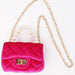 Make a statement with this fabulous hot pink velvet purse that's impossible to ignore! Crafted from luxuriously soft velvet in a show-stopping shade, this beauty features an elegant pearl handle that adds a touch of sophistication to any outfit. The included gold crossbody chain lets you wear it your way—sling it across your body for hands-free convenience or carry it by the handle for a more polished look. Perfect for nights out, special occasions, or whenever you want to add a pop of glamorous color to your ensemble. This purse proves that bold style and practical design can absolutely go hand in hand.