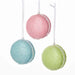 Add a splash of fun to your holiday decorations with these pink, blue, and green macaron ornaments. Glittered to resemble sugared treats, each macaron hangs from a delicate white ribbon, perfect for decking out your Christmas tree or festive space.