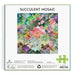 The Succulent Mosaic 500 Piece Foil Puzzle from Galison illustrates the multitude of color within the world of succulents, with the plants coming alive with shiny gold foil accents. Galison puzzles are packaged in matte-finish sturdy boxes, perfect for gifting, reuse, and storage. • 500 pieces, some with gold foil accents • Box Size: 8" x 8" x 2", 203 x 203 x 51 mm, Puzzle Size: 20" x 20", 508 x 508 mm • Includes Puzzle Insert with Full Puzzle Images • Virtually No Puzzle Dust • Puzzle greyboard contains 90% recycled paper. Packaging contains 70% recycled paper and is made responsibly from FSC-certified material. Printed with nontoxic inks.