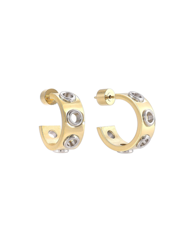 Where absence holds power. Lightweight and easy to wear all day, these hoops are crafted in stainless steel and finished in rich 18K gold or rhodiu...