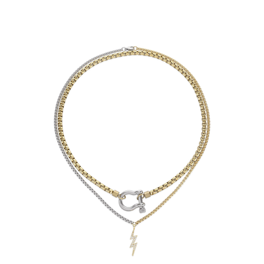 Introducing the Carabiner Square Spiga Necklace: a bold composition of chunky stainless steel links adorned with charismatic charms that catch the ...