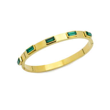 Slip on this dazzling Emerald Bangle and let those five sparkling zirconia stones do the talking! Crafted from hypoallergenic stainless steel with ...