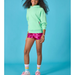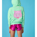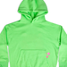 This charming apple green hoodie features a vibrant pink embroidered tiger on the back and cute little pink stars by the front pockets. It's soft, cozy, and incredibly comfortable with a blend of 50% polyester, 38% cotton, and 12% rayon. Complete with a front pocket and hood, it’s perfect for playful days. Easy to care for with machine wash convenience.