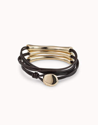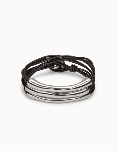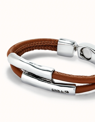 Double camel leather bracelet with two central sterling silver-plated tubes. Made in Spain with a 100% handmade process.Genderless jewelry collecti...