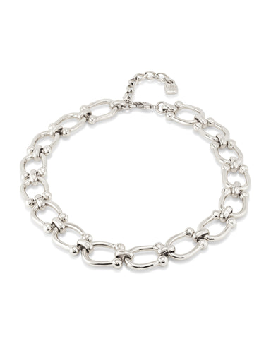 Presenting the Carabiner Puerto Chain: a defiant twist on the classic, available as a choker or necklace. This chunky square link chain, made from ...