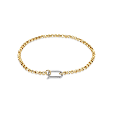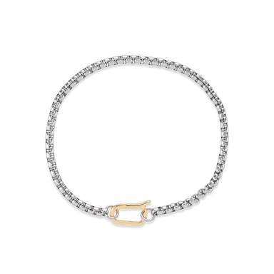 The "Can Opener Box Bracelet" is a thin stainless steel chain with a 925 sterling silver 18k gold plated clasp. Perfect for every day, its water r...