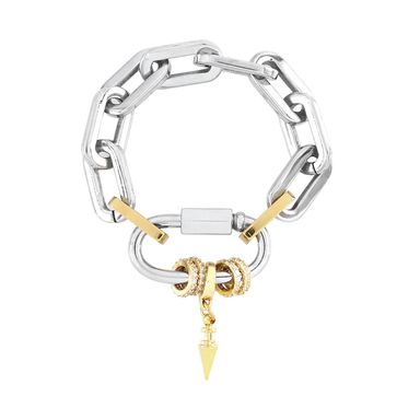 Unveiling the Carabiner Pave Puerto Bracelet: a hefty link of stainless steel punctuated with captivating charms, each telling its own audacious ta...