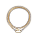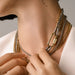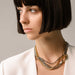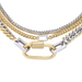 This standout chunky carabiner meets the elegance of mixed metals. This eye-catching piece combines gold and silver, offering both a bold look and a touch of simplicity with its two additional thin chains.