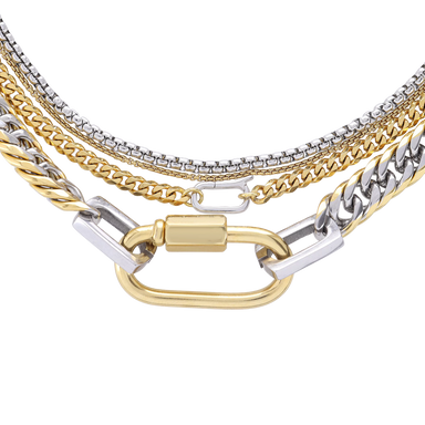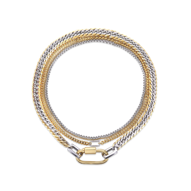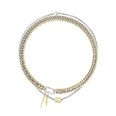 This standout chunky carabiner meets the elegance of mixed metals. This eye-catching piece combines gold and silver, offering both a bold look and ...