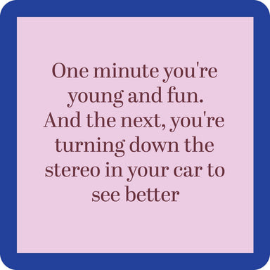 “I hate it when I turn on the car in the morning and the music starts blasting…It’s like, whoa, I’m not the same person I was last night.” Coaster...
