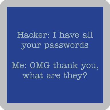 “Patience tested" Coasters are 4”x 4” resin with cork backing and round corners. Made in the USA.