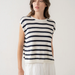 This breezy knit top brings nautical charm with its timeless horizontal stripes and effortlessly cool vibe. The relaxed, boxy cut drapes beautifully while the sleeveless design keeps things light and airy. Rolled-edge armholes add a polished finish, while the playful high-low hem and subtle side slits give you room to move and groove. Topped with a clean crew neckline, it's the perfect laid-back layer for casual days by the water or anywhere adventure calls.