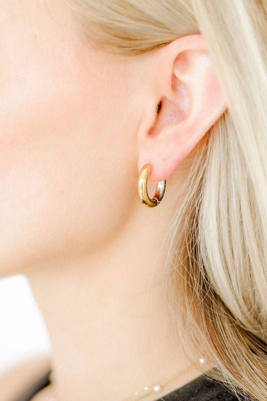 Make a bold statement with the Scarlett Hoop Two-Tone 12mm Huggie Earrings. These vibrant gold and silver huggies are crafted from 100% surgical-gr...