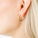 Make a bold statement with the Scarlett Hoop Two-Tone 12mm Huggie Earrings. These vibrant gold and silver huggies are crafted from 100% surgical-grade stainless steel, ensuring they are lightweight, durable, and hypoallergenic—perfect for sensitive ears. Waterproof and designed for daily wear, these earrings are perfect for both adults and teens. The sleek gold and silvers finish adds elegance to any outfit. Face the color of your choosing forward for a gold OR silver touch