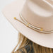 For a neutral style a thick braided rope band with genuine leather + gold hardware. This hat band is a one size fits all band that is adjustable. Pull the tails of the band, while sliding up the bolo hardware to tighten the band once it is around the crown of your hat. Material - 100% Genuine Leather Dimensions - 80 cm