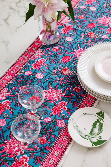 Make your meals extra festive with our exclusive blockprint table runners. Handmade in India, the charming color combo and the striped scalloped tr...