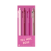 Our 4 packs of Jotter Pen Sets are all themed sets. Super fun sayings and the perfect color mixes.  The soft-touch barrel surface and fine-point gel ink that matches the barrel will make these pens your new favorite. Did we mention these pens are TIKTOK famous?! Yep, that's WRITE! (please note the navy, grey, white, and metallic pens write in black ink) These 4-pack Jotter Sets are a TOP SELLER in our Store and we hear the same feedback from all of our retailers!! Don't forget to check out our new 6-Pack Jotter Set too!