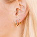 Meet your new go-to earrings: the Scarlett Hoop Gold Huggie Earrings. With their chic 12mm design and dazzling CZ sparkle, they deliver that perfect balance of glam without going overboard. Crafted from surgical-grade stainless steel, these lightweight wonders won't irritate sensitive ears and laugh in the face of water—pool days, shower sessions, you name it. They're the kind of earrings that work as hard as you do, looking effortlessly polished from morning coffee to evening plans.