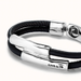 Double black leather bracelet with two central sterling silver-plated tubes. Made in Spain with a 100% handmade process. Genderless jewelry collection that combines leather with tube-shaped, silver-plated and organic finish pieces. Discover the collection ser natural.