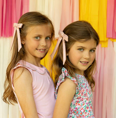 A girly girl's dream! Our classic scrunch pouch just got a flirty new upgrade! This quilted pink bow printed pouch is a must-have for your mini's G...