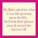 “My kids asked me what it was like growing up in the 80s…so I took their phones away and turned the internet off.”