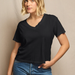 This lightweight, timeless V-neck tee offers a slightly oversized fit that exudes understated elegance. Designed to fall just below mid-rise denim, it strikes the perfect balance between subtle allure and everyday comfort. Crafted from a thoughtfully chosen blend of 67% cotton and 33% polyester, this essential piece is available in curated tones to complement any wardrobe. Made with care in California, it promises lasting wear and ease of maintenance—machine wash cold, tumble dry low, and warm iron as needed. An indispensable addition you'll reach for again and again.
