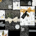 Items included: (3) Rolls Wrapping Paper (Jingle Bells, Solid Black, Trees) - 17" x 240" each (1) Sheet Coordinating Stickers | 13 stickers per page | 26 stickers total | 8.5" x 11" sheet (1) Pack of Tissue Paper (10 sheets Fa La La & 10 sheets star) (1) Set of 6 Neutral Bottle Brush Trees (1) 2" Black Velvet - 3 yards (1) 2" White Velvet - 3 yards (1) Black Tinsel - 20 yards (1) Pack of 20 Christmas Stickers (3) Pinecones (5) Sprigs