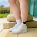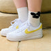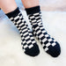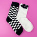 Step up your sock game with this playful duo: one pair features a chic black-and-white check, while the other shows off a fun white base with black floral design. This set includes two pairs crafted from 75% cotton, 20% polyester, and 5% elastic, fitting comfortably on US women’s shoe sizes 5.5 to 9.