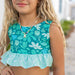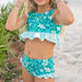 Make a splash this spring and summer in the Oaklie Lush Green Swimsuit! This adorable two-piece features a ruffled top with a cute tie-back closure, paired with matching mint and teal bottoms. Perfect for pool days, beach trips, or backyard fun, this playful set keeps her comfortable and stylish all season long. Whether she's diving into adventure or lounging poolside, she'll love the fun colors and flirty ruffled details!