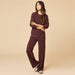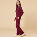 Cherry Cola Vintage Velvet Raglan Crew Neck with Pintuck Wide Leg Pant