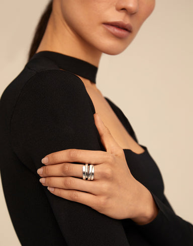 A bold but elegant ring- featuring a stacked design. Perfect worn on its own, or with statement rings added. Classic and timeless. Details: Sterlin...