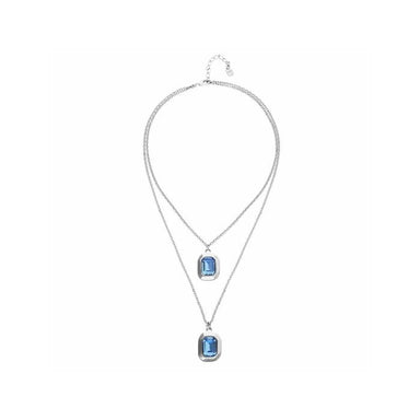 Silver-plated double-chain necklace featuring a faceted blue crystal pendant. A modern, layered design that adds subtle color and effortless elegance.