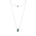 Double sterling silver-plated chain with two different lengths and faceted green crystals. Made in Spain with a 100% handmade process.These pieces of jewelry are an art exhibition composed of bracelets, rings, necklaces and earrings, where each piece is a work of art in which we find emerald style cut crystals and pieces with layers of geometric shapes. Discover the collection ser magnética.