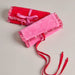 Made from cotton and velvet, Say hello to the Elle Jewelry Roll — your new favorite way to travel in style! This velvet roll-up case features two zip pockets, one slip pocket, and two ring holders to keep all your baubles safe and organized. Its playful ruffle trim and tie closure add a fun, feminine touch, making it as cute as it is functional. Toss it in your tote or suitcase, and you’re ready for glam on the go.