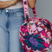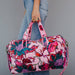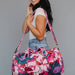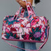 Transport your essentials in style with this charming light pink floral duffel! Featuring a vibrant multicolored bloom pattern, it's as pretty as it is practical. The secure zipper closure keeps your belongings safe, while an interior zippered pocket and two open compartments offer smart organization options. Measuring 19" x 11" x 9", it's the perfect size for weekend getaways or gym trips. Crafted from a luxurious 50/50 polyester-viscose blend, this duffel combines durability with a soft, elegant feel.