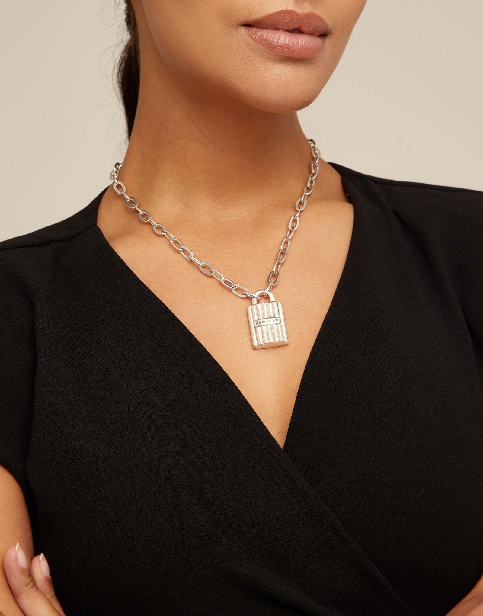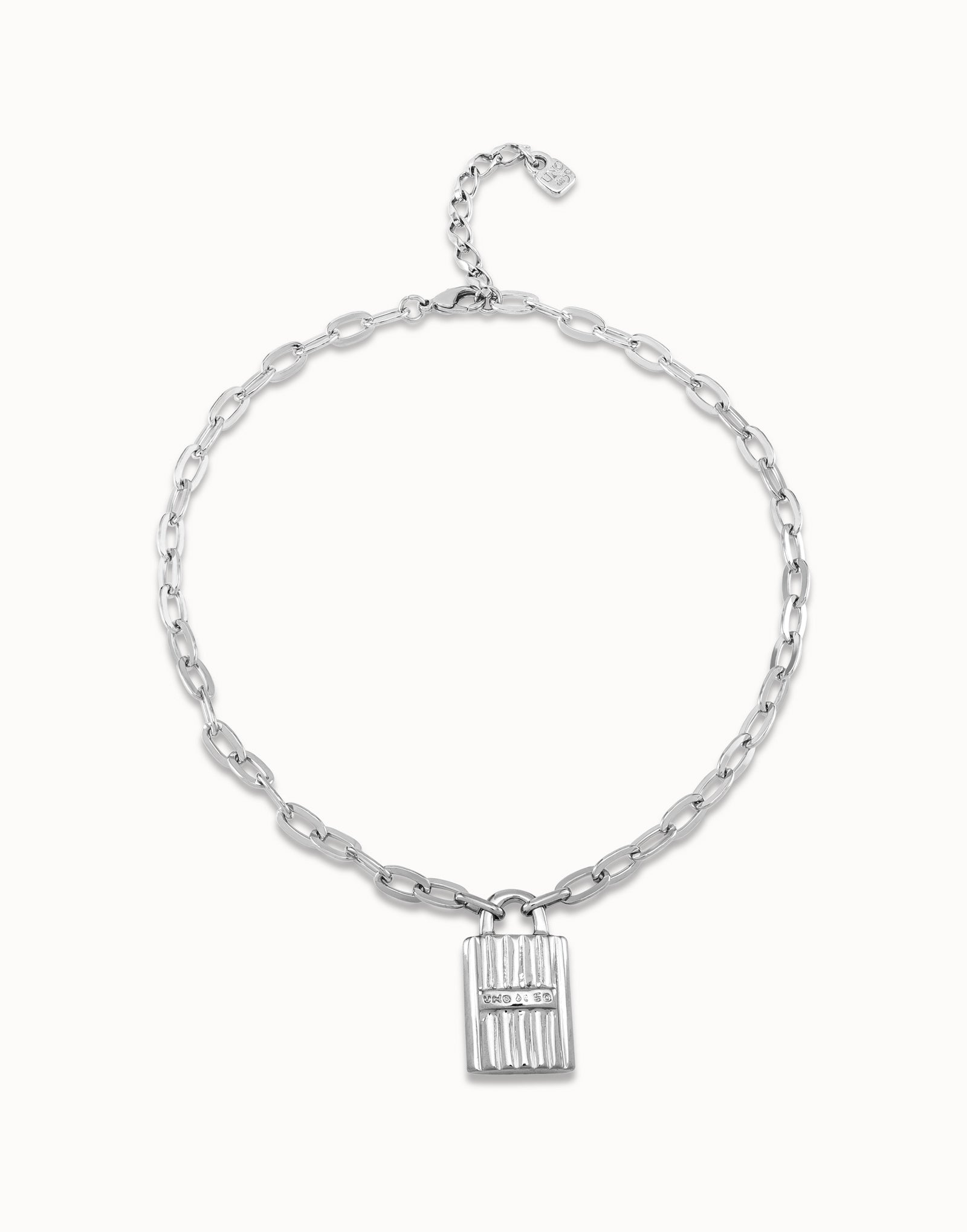 This necklace includes links that hold a large central padlock with the UNOde50 logo engraved. This handcrafted jewel has been made in Spain through a meticulous process. It has a carabiner clasp that allows the jewelry to be adjusted to the desired size. Get it now and wear it on any occasion. The Confident collection symbolizes self-confidence and confidence in others. It is said that the key symbolizes communication and the padlock symbolizes trust. Two symbols that have always been with us and are constantly changing.