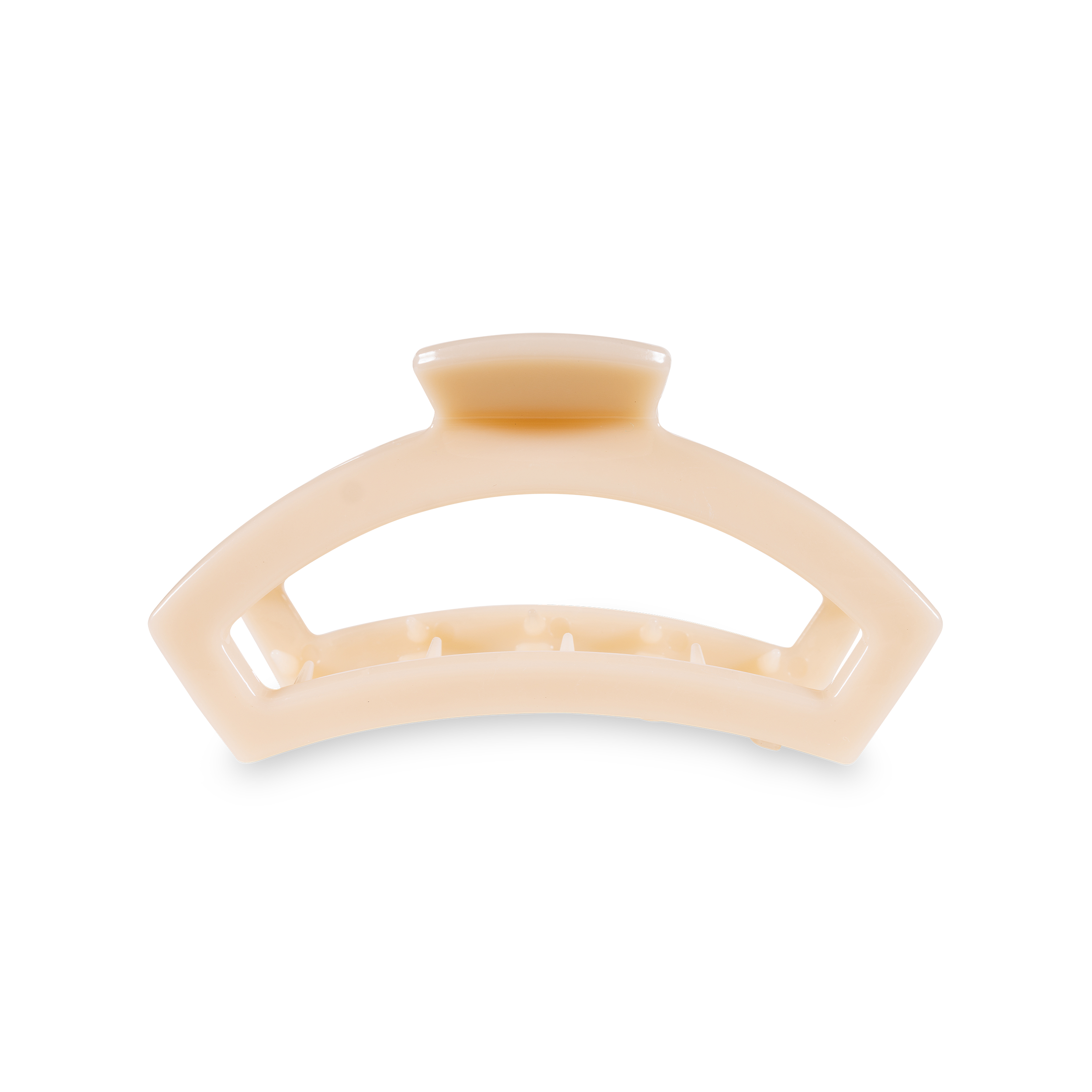 Our Open Hair Clip offers the same incredible advantages as our Classic Claw Clip, but with a unique open-style design that allows your hair to show through. Say goodbye to breakable clips! We have perfected the hair tie and now have re-invented the hair clip. Each clip has bendable teeth that take back to shape, they work on all hair types and have a strong hold. Hold your hair and enhance your style with the new TELETIES Clip!  Medium clips are great for thick to medium thickness of hair.  The medium clip is 3.73 inches long.