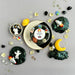 Includes: 8 oz Black (Black Cherry) KidDough with Space Glitter and Space Charms (Earth, Moon, Satellite, Astronaut, UFO), Astronaut Figurine, Planet Figurine, Crescent Moon Figurine, Rocket Figurine, Yellow, Silver and Black Acrylic Space Rocks
