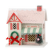 * House is 4" wide x 3.5" deep x 6.5" tall * Constructed of heavyweight paperboard with glitter accents * includes battery powered light inside