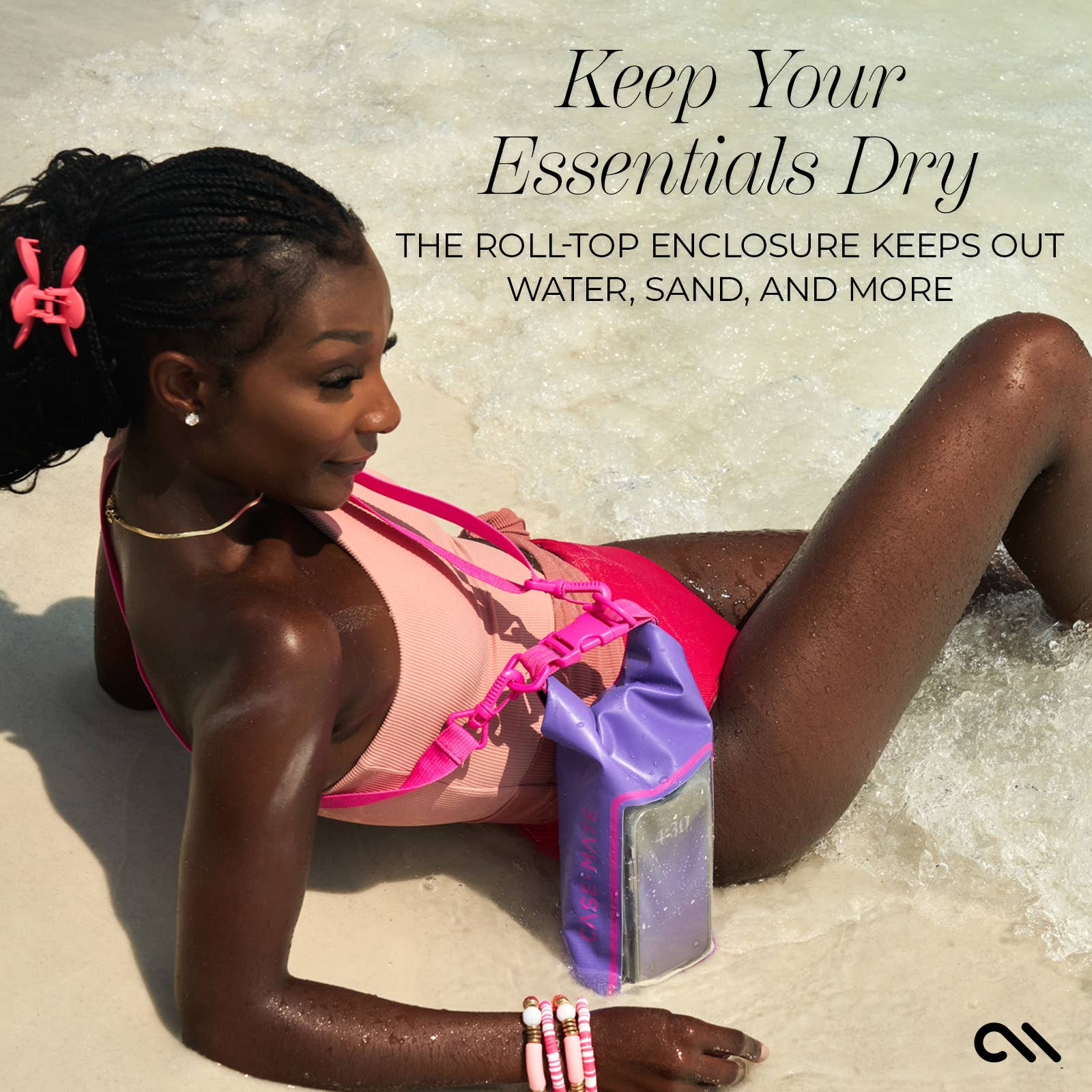 Keep your essentials dry with the Waterproof Mini Bucket Bag while at the beach, hitting the slopes, or on the lake! Confidently keep out water, snow, dust, sand, and dirt with the roll-top enclosure that ensures a perfect seal. With touchscreen access to your phone, you can check messages or notifications without removing your phone, making it easy to stay connected and protected. This perfect beach bag’s adjustable strap lets you carry your essentials in a variety of crossbody styles.
