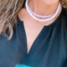 This White Beaded Necklace is handmade with love and features a 16" length and sturdy toggle clasp on flexible wire. Add it to your game day necklace stack for a touch of quirky charm. The clasp also has small gaps for the ideal amount of movement.